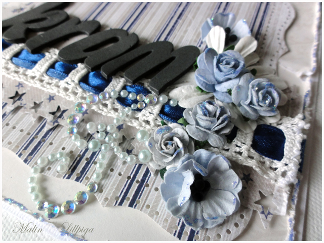 The paper that I have choosen are from the amazing Basic Grey. The water lilies have I made with my Silhouette Cameo and I have also use punches från Martha Stewart and dies from Spellbinder and Marianne Design.